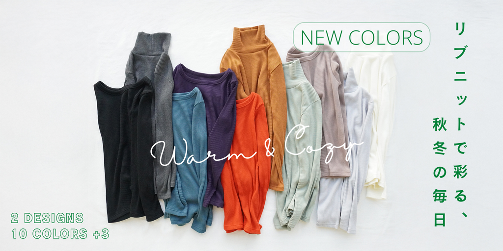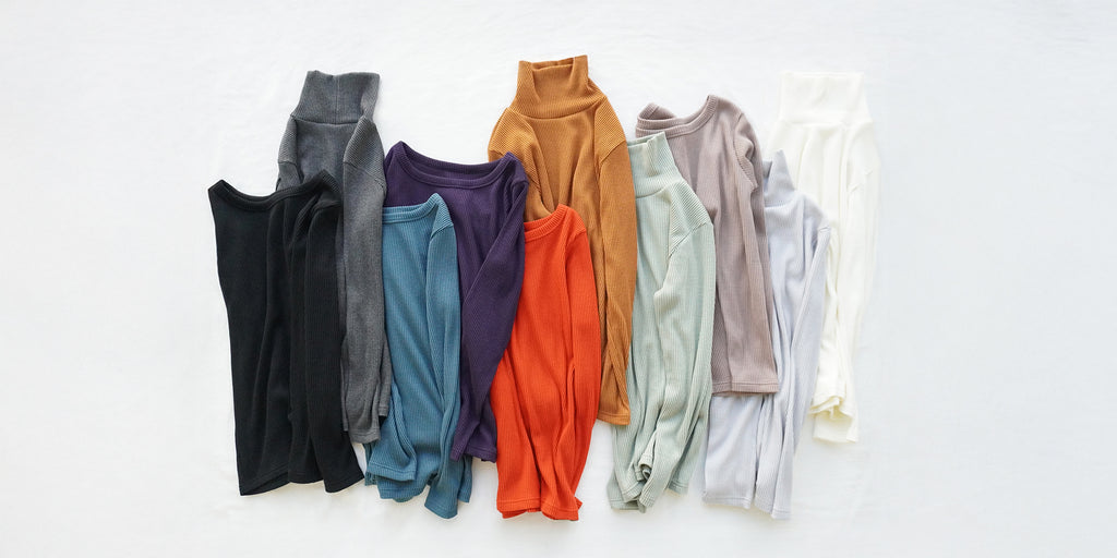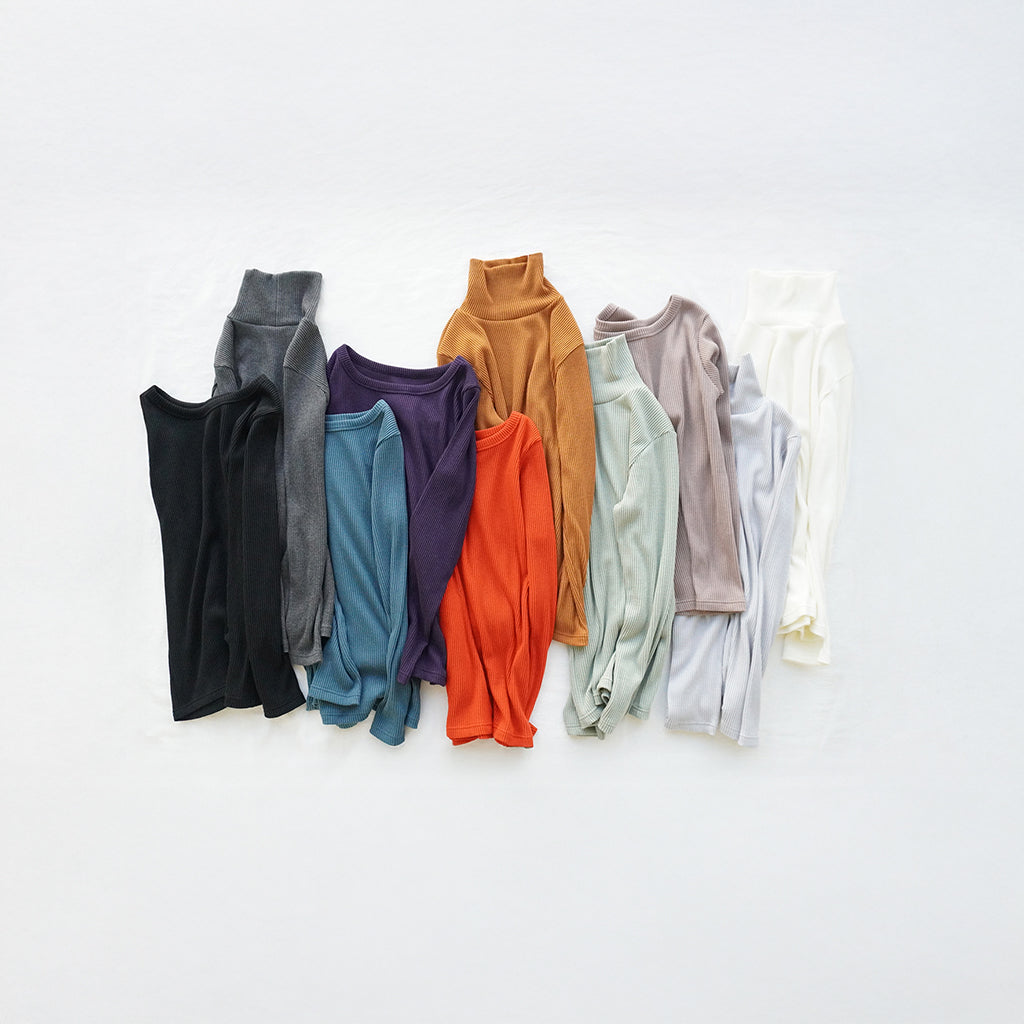 どの色を選ぶか迷ってしまうほど、魅力的な10色(+3色)のリブニット。ハイネックとラウンドの2型から、今日の気分に合わせて選べます。