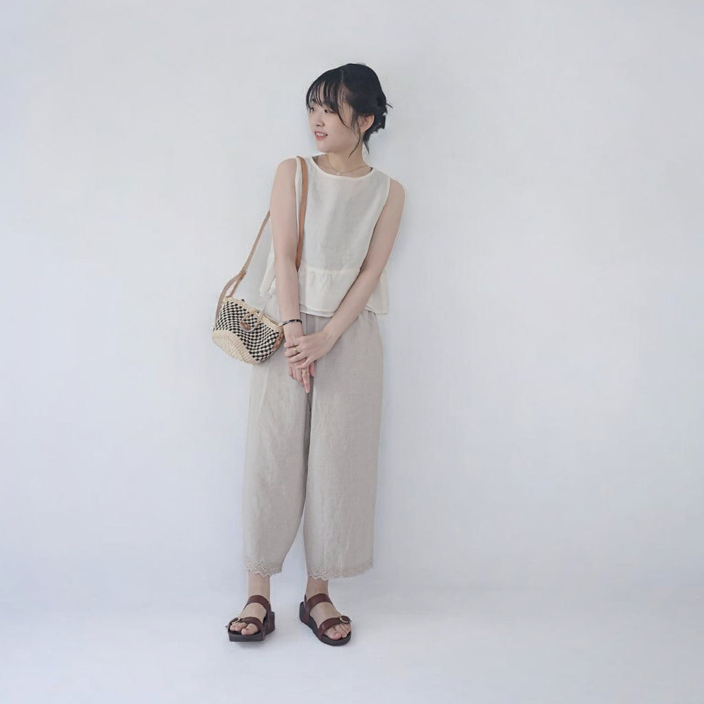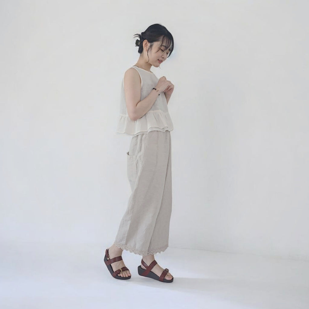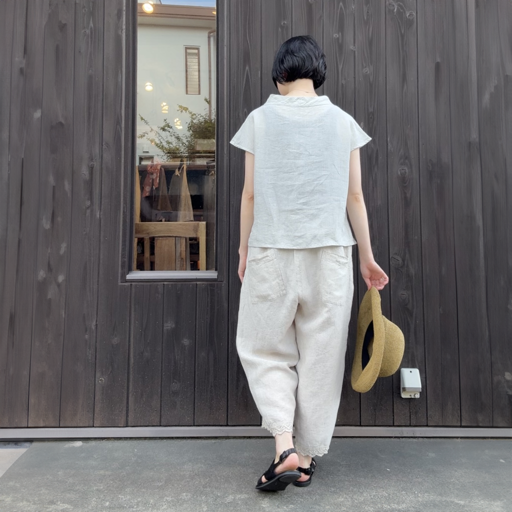 軽やかなリネンダンガリー生地を使用したリラックスパンツ。